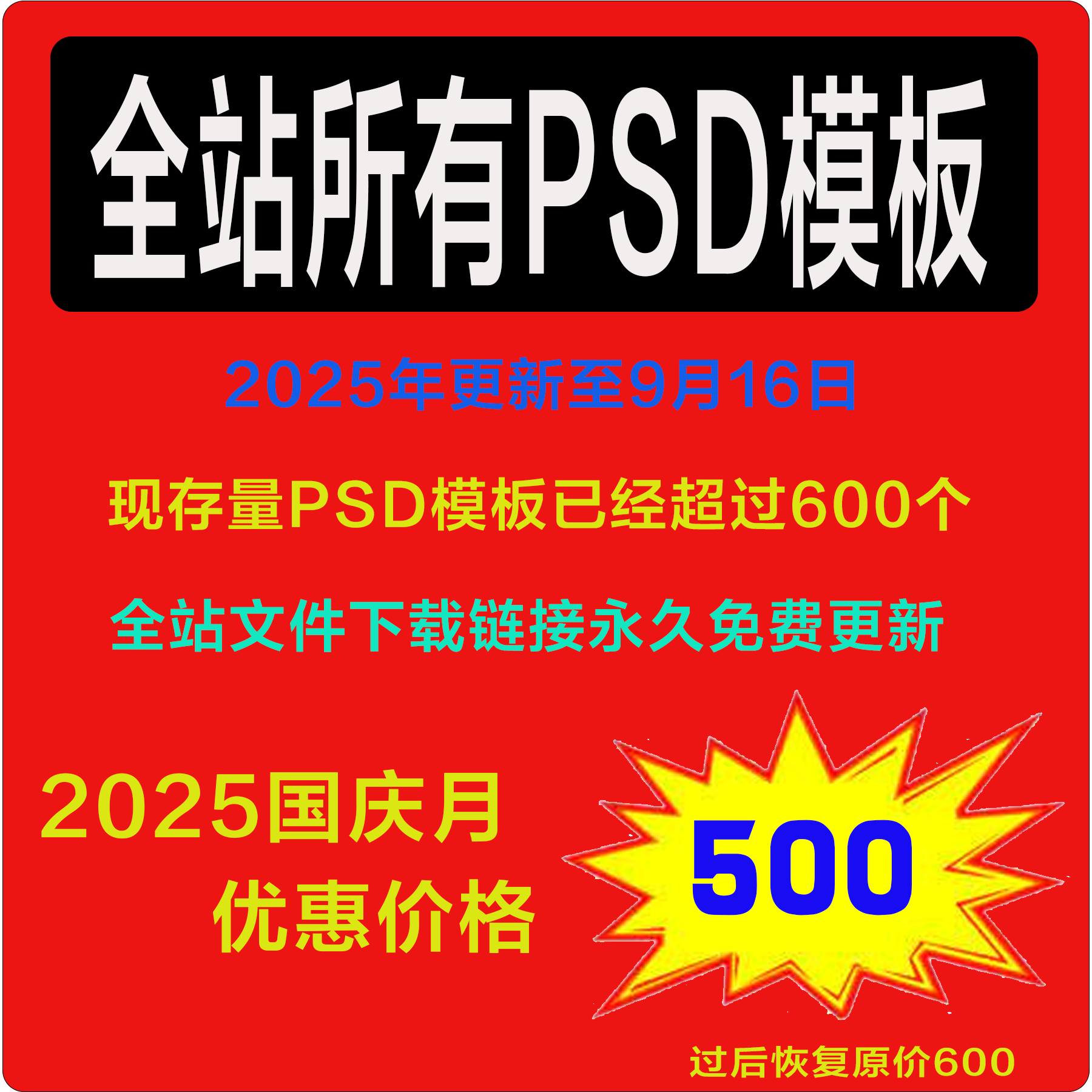 全站超过600+PSD合集打包|#特惠价#|【永久免费同步更新】最近更新日期2025年9月16日